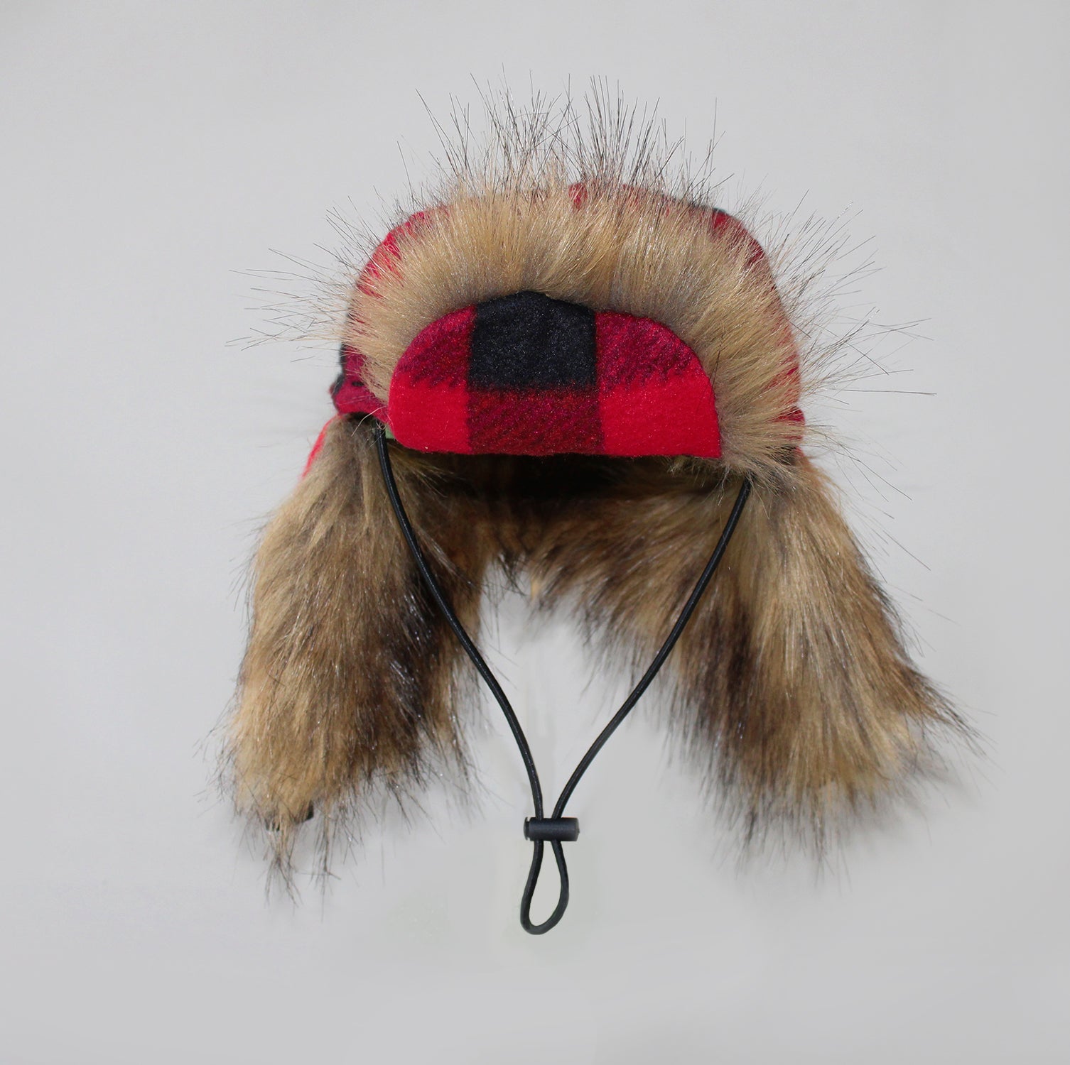 Lumberjack Dog Hat – Cozy Plaid Style for Adventure-Ready PupsGive your pup the warm, woodsy charm of winter with our Lumberjack Dog Hat - a fan-favorite blend of rugged style and irresistible cuteness. Designed in our signature red-and-black buffalo plaid and trimmed with ultra-soft faux-fur, this hat keeps your dog looking adorable while staying comfortable in chilly weather. Adjustable chin cord + cord lock for a customizable, secure fit.
