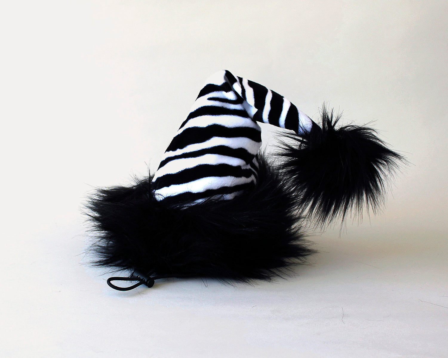 Zebra Print Dog Santa Hat w/Black Fur